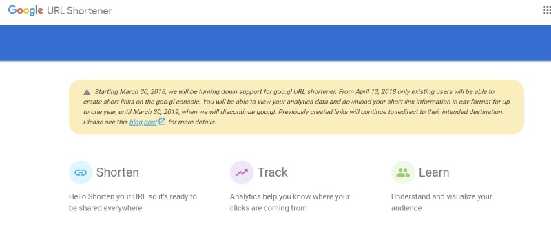 บริการย่อชื่อ URL จาก Google ขึ้นชื่อว่าเป็นบริการย่อชื่อที่น่าเชื่อถือ สามารถตรวจสอบ traffic และสะดวกในการแชร์ลิงก์อย่างมาก อย่างไรก็ตาม บริการย่อชื่อ url จาก google อย่าง goo.gl กำลังจะปิดตัวลงแล้วในช่วงกลางเดือนเมษายนนี้